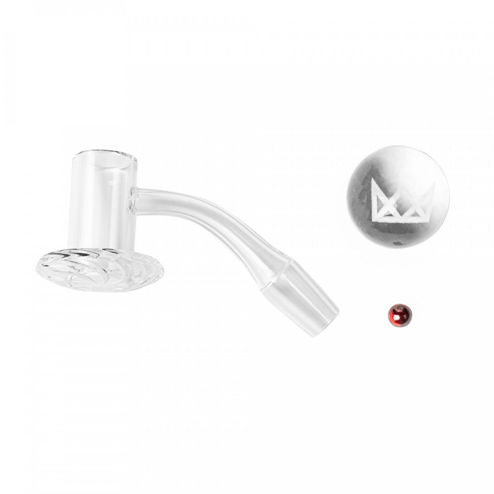 The GEAR Premium® Blender Banger combines the airflow of a channel cap with the efficiency of a terp slurper. The result is a premium dabbing kit that includes a marble, terp pearl, and a terp slurper banger with an engraved centrifugal design. Now you have everything to get started with your next dab!