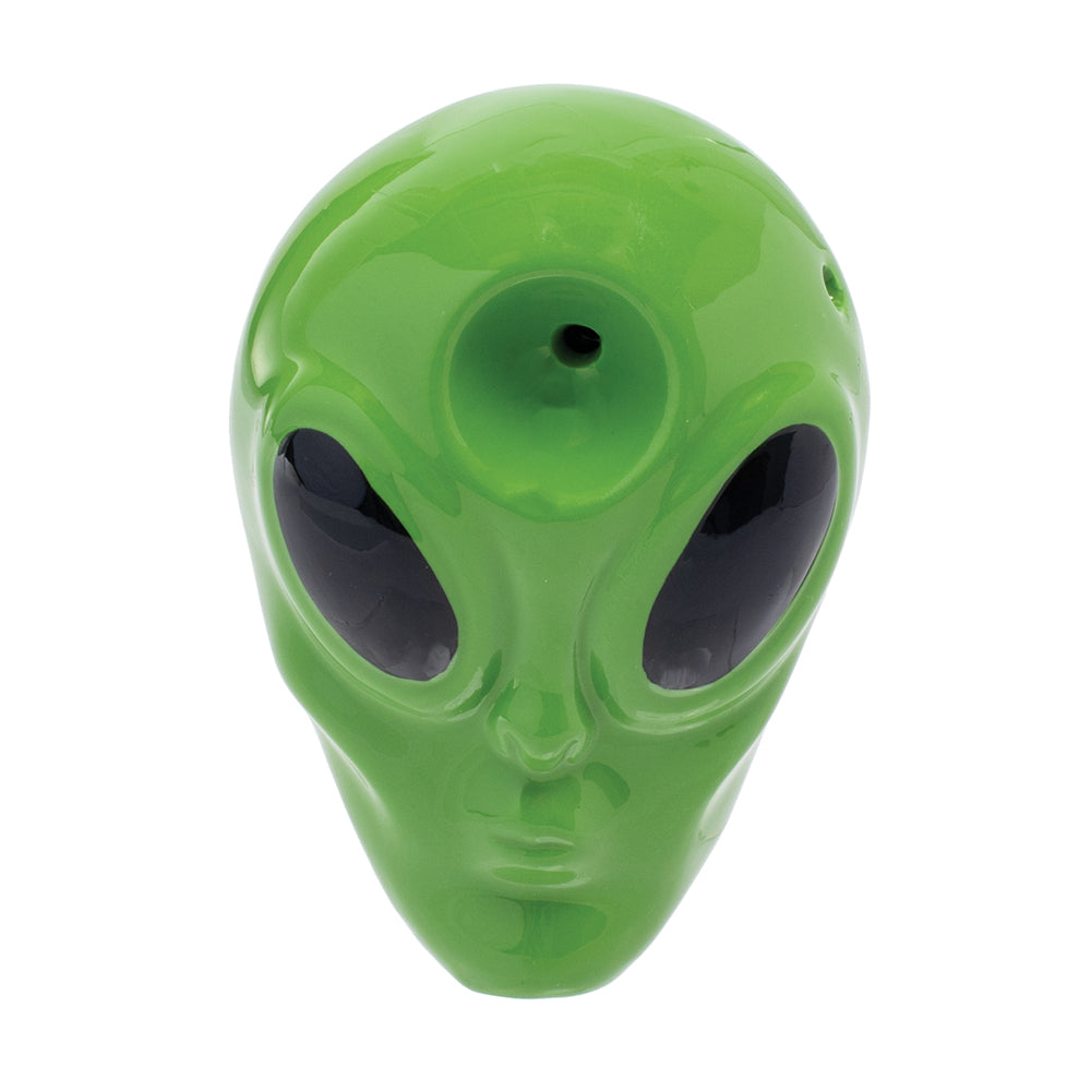 A pipe that is practically out of this world! This ceramic alien measures 3.5'' and features a carb hole on the side for functionality.