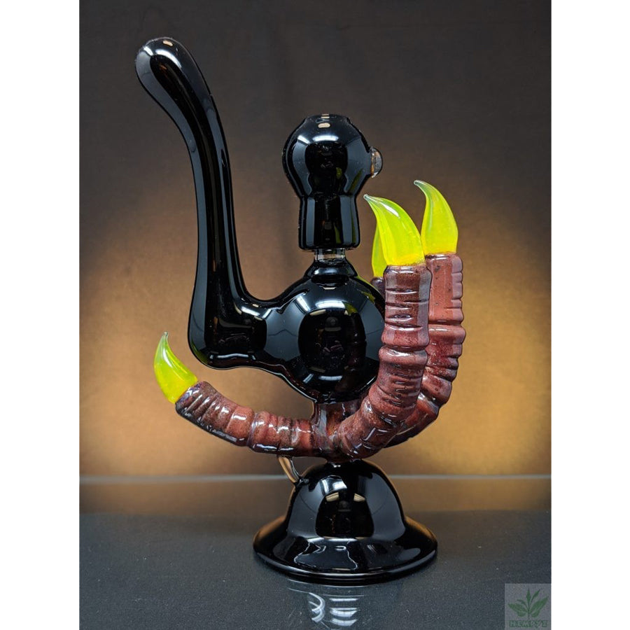 This ghoulish rig is made by the Canadian artist Ben Cator. It features 14mm male joint and comes with a matching seahorse dome.
