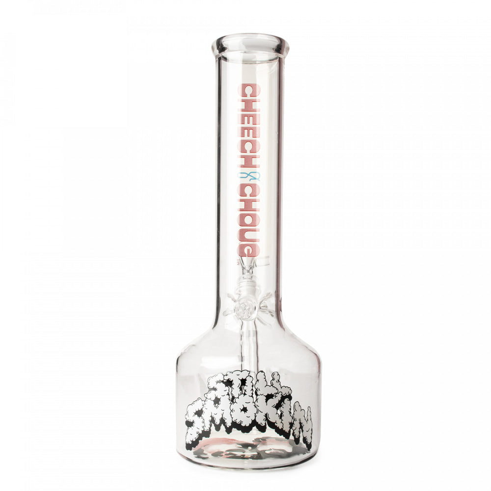 Half a century later, Cheech & Chong are still blazing it, and now you can too with the 12" Still Smokin Canteen Base Water Pipe from Cheech & Chong® Glass. This clear canteen-style pipe features licensed decals on the tube, chamber, and bottom base, along with a handy ice catcher. Because let's be real, how can you groove to some sick tunes without a solid bong, bro?!