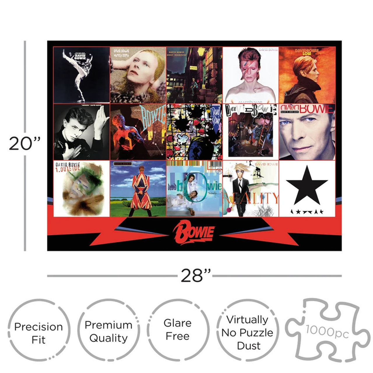 The artistry of David Bowie is featured in this 1000 piece puzzle which depicts some of the beloved musical icon’s album covers. This officially licensed David Bowie puzzle is the ultimate gift for Bowie fans of all ages. Aquarius uses a precision cutting technique which ensures a perfect fit of all puzzle pieces, leaving virtually no puzzle dust behind. Aquarius uses thick quality paper that is glare-free so you can show off your masterpiece with pride.