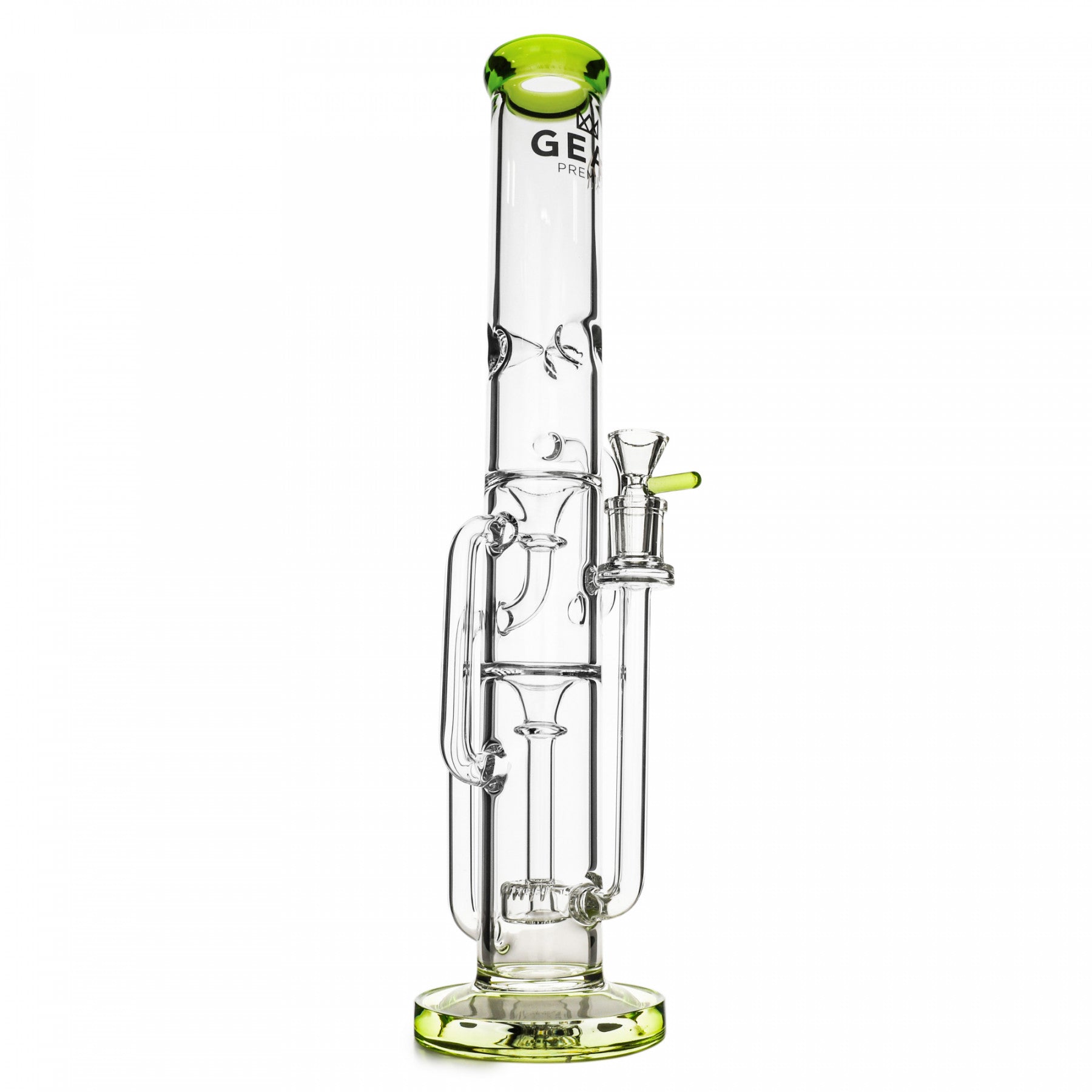 Discover the efficiency of GEAR Premium® 15'' Recycler with its Stemless Dual Chamber design, featuring a built-in UFO perc for clean hits and increased smoking power.