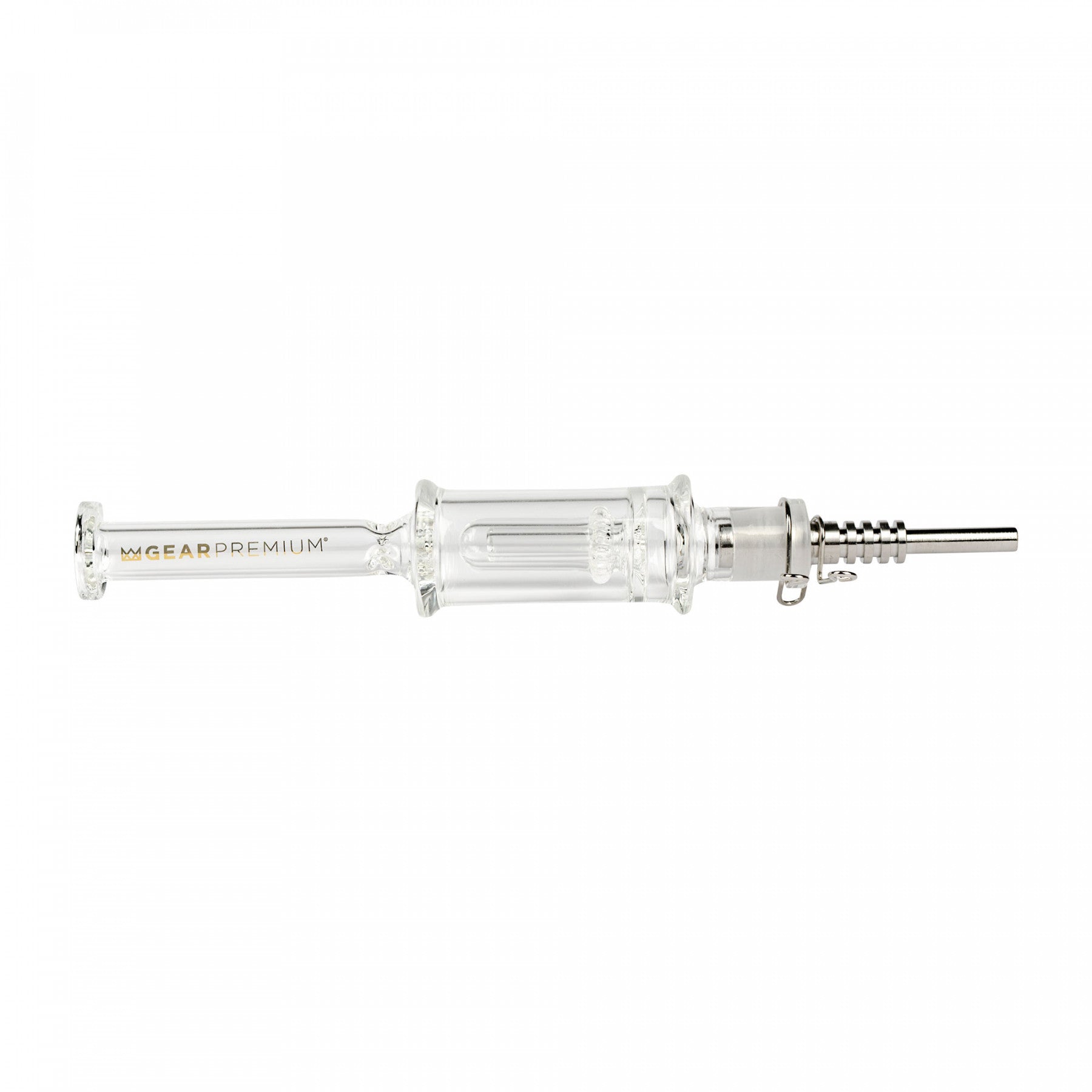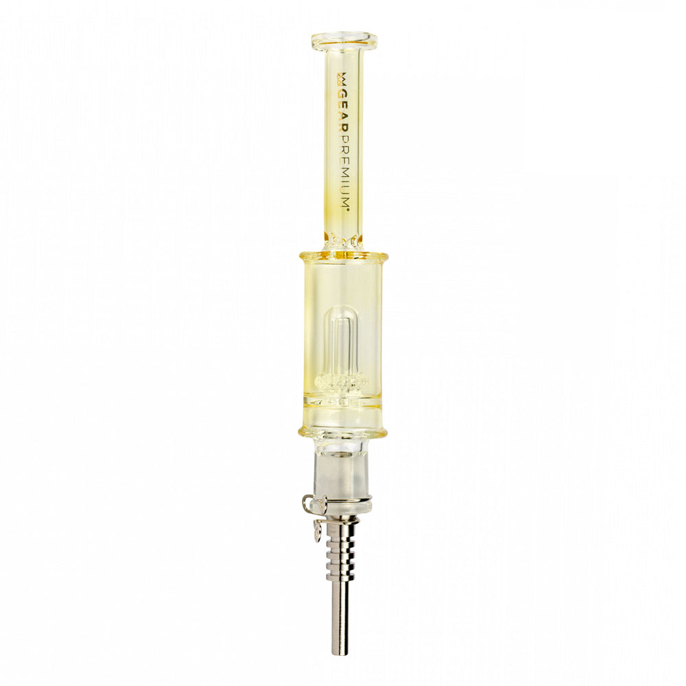 Introducing the Mini Dabmolisher, the "little" version of GEAR Premium®'s 9" Dabmolisher. Get ready for a premium high with its showerhead perc and titanium nail/clip. This nectar collector is unlike any other!