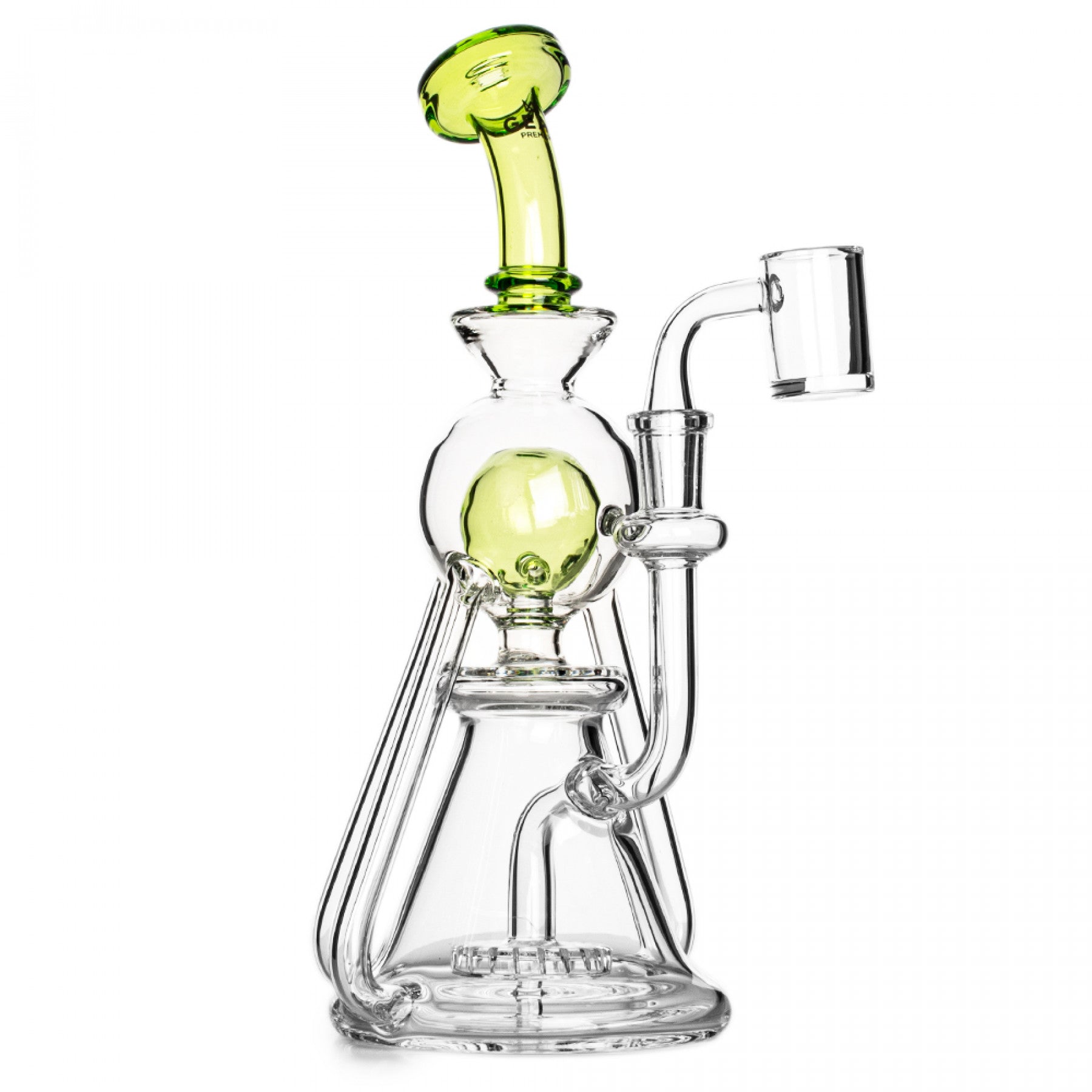 Experience the stunning view of the Panorama Triple Uptake Concentrate Recycler, complete with three revolutionary uptake arms that recycle your concentrate for a dabbing experience like no other. Adorned with a 24K gold GEAR Premium® decal and crafted from sturdy 100% borosilicate glass, this rig guarantees an unforgettable session.