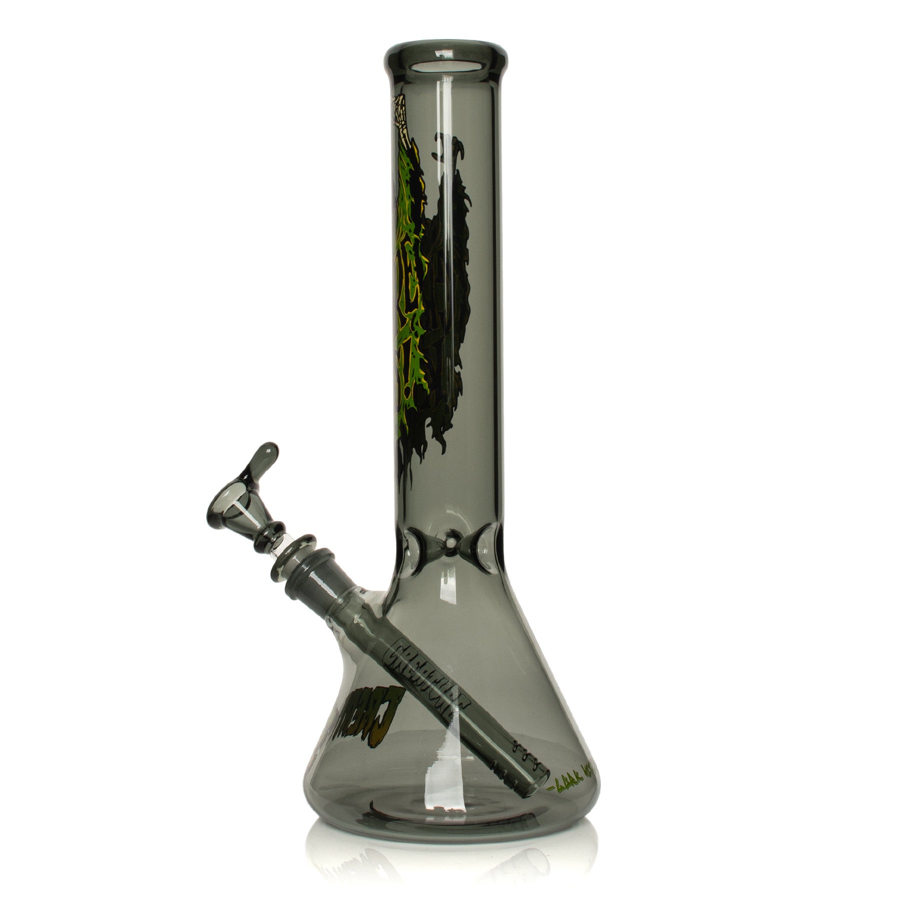 Take on the ominous vibes of the reaper himself with the 12” Reaper Kills Water Pipe from Creature x GEAR Premium®. Crafted from durable handblown borosilicate glass, this piece is ready for any wild journey. Comes with a Creature x GEAR Premium® Display Box when you make it yours. Push boundaries and become a part of the smoking elite!