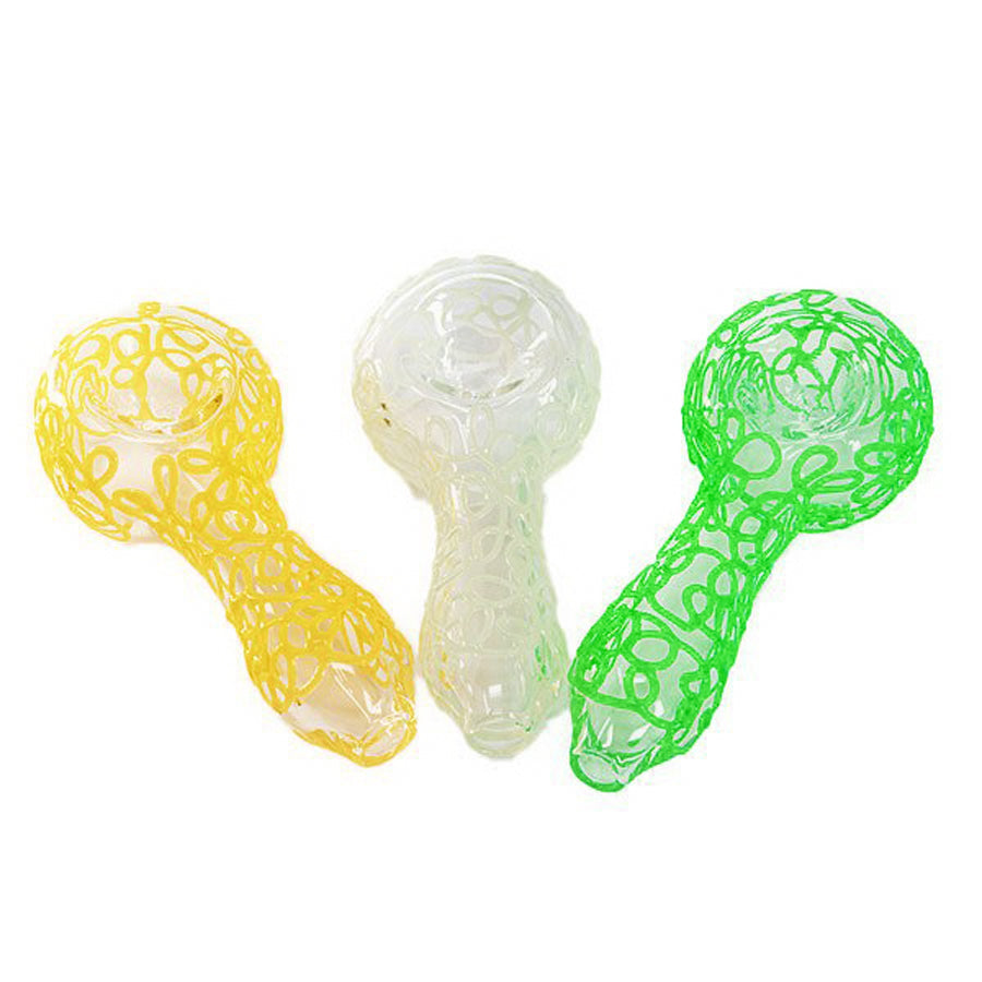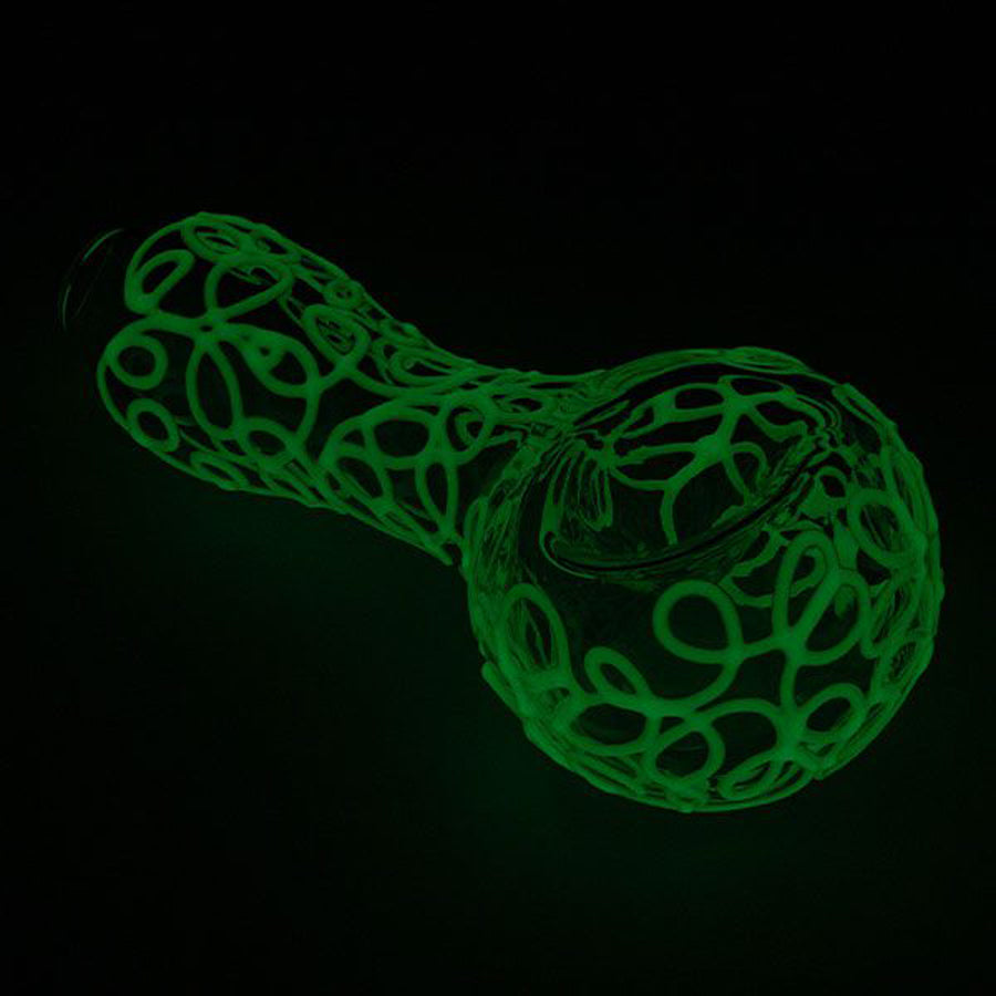 These unique pipes have abstract glow in the dark swirls on them! Measuring 4'' in length and made from borosilicate glass.