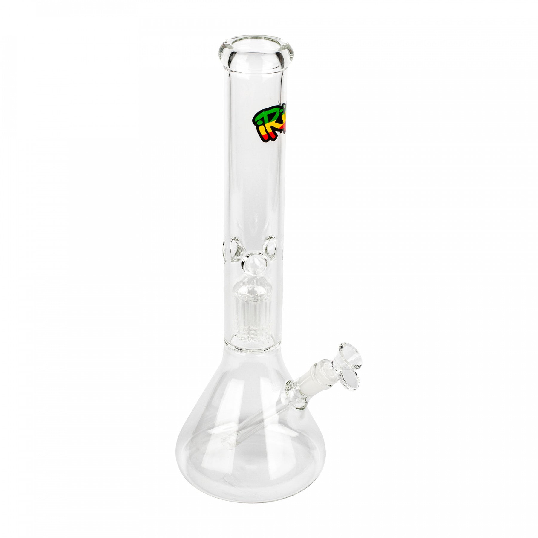 This sizeable 16'' Beaker from iRie™ has a reservoir for water in the base, but also in the neck. After your smoke passes through the base, the tree percolator (also holding water) gets a second opportunity to cool and filter your smoke again. If you want to cool down your smoke even more, then you can pop a few ice cubes into the neck thanks to the handy ice pinch! Made from 100% borosilicate class and with a wide, sturdy base.