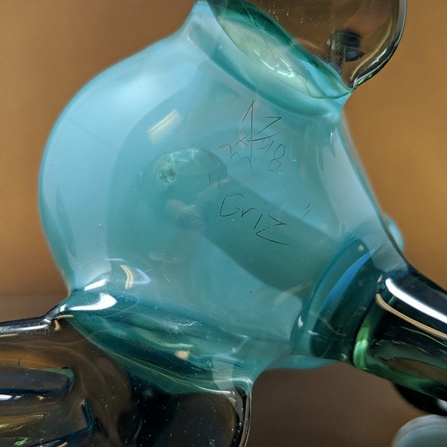 These unique characters are made by Kahuna Glass out of British Columbia. This is one of his full colour Scalien, made with a 14mm female handmade joint. Signed in 2018 and named "Griz".