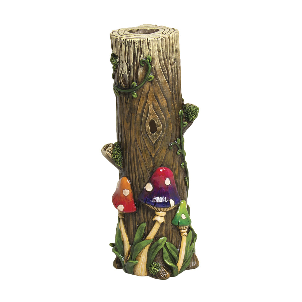 This whimsical Mushroom Tree Incense Tower features mushrooms and ivy, hugging a tree. This incense burner is compatible with stick incense styles. The incense stick goes inside the burner, and slowly smoke seeps from the trees orifices.