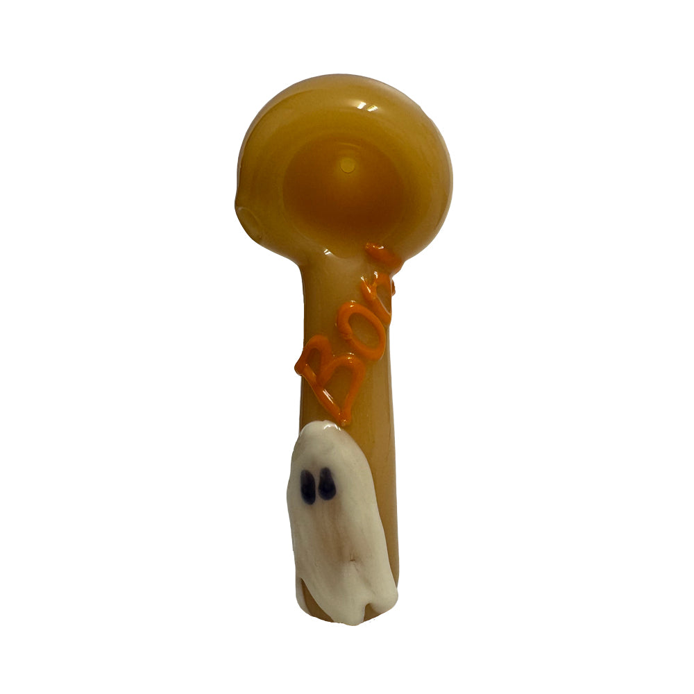 Crafted by the talented BC artist, Narc Glass, this pipe features a playful BOO! Ghost design and boasts excellent quality and one-of-a-kind style.