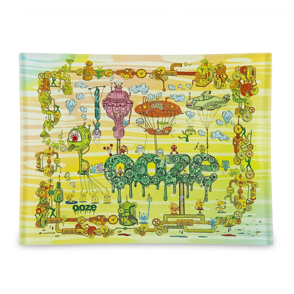 This Ooze Glass The Works Tray is the perfect addition to any smoking collection. Constructed out of shatter resistant glass, the medium sized tray measures 10'' x 6'' and is part of the limited edition designer series. Enjoy the perfect rolling experience with this premium quality tray.