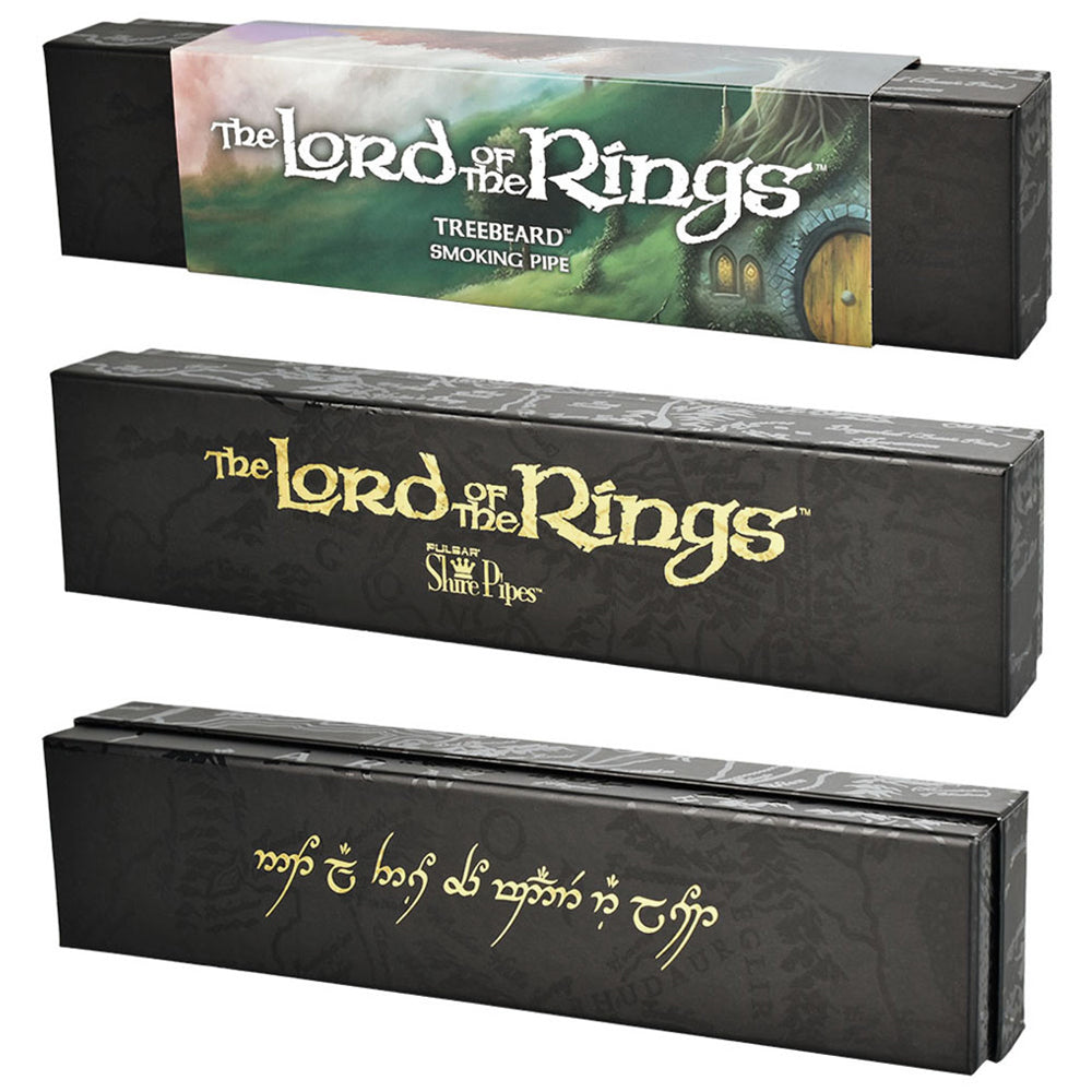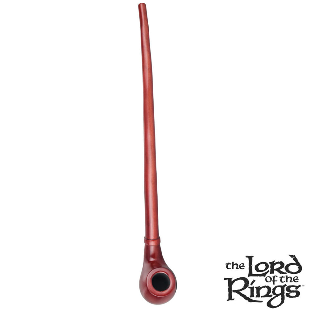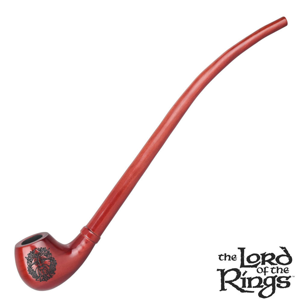 The Treebeard Pipe moves slowly and takes time to contemplate choices and find the right path. This Churchwarden style pipe has a singular design made from quality Cherry wood, and the bowl is engraved with a leafy, smiling face of the Ent Treebeard. These pipes measure 13 inches long and include their own poking & tamping tool, bowl screens, & pipe cleaners. Each The Lord of the Rings Shire Pipe comes packaged in an official collector's gift box.