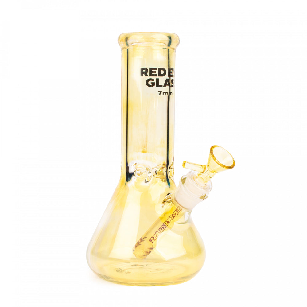 These 7mm Beakers from Red Eye Glass® are thick and durable. Made of 100% borosilicate glass, these tubes feature a built-in ice catcher. The body is also fumed with silver, a technique that creates what is referred to as "colour change" glass. While it won't shift between colours like a chameleon, it will reflect different colours depending on the lighting. Also as resin builds up on its' walls it tends to reflect a blueish/purple hue, instead of the classic brown resin colour.