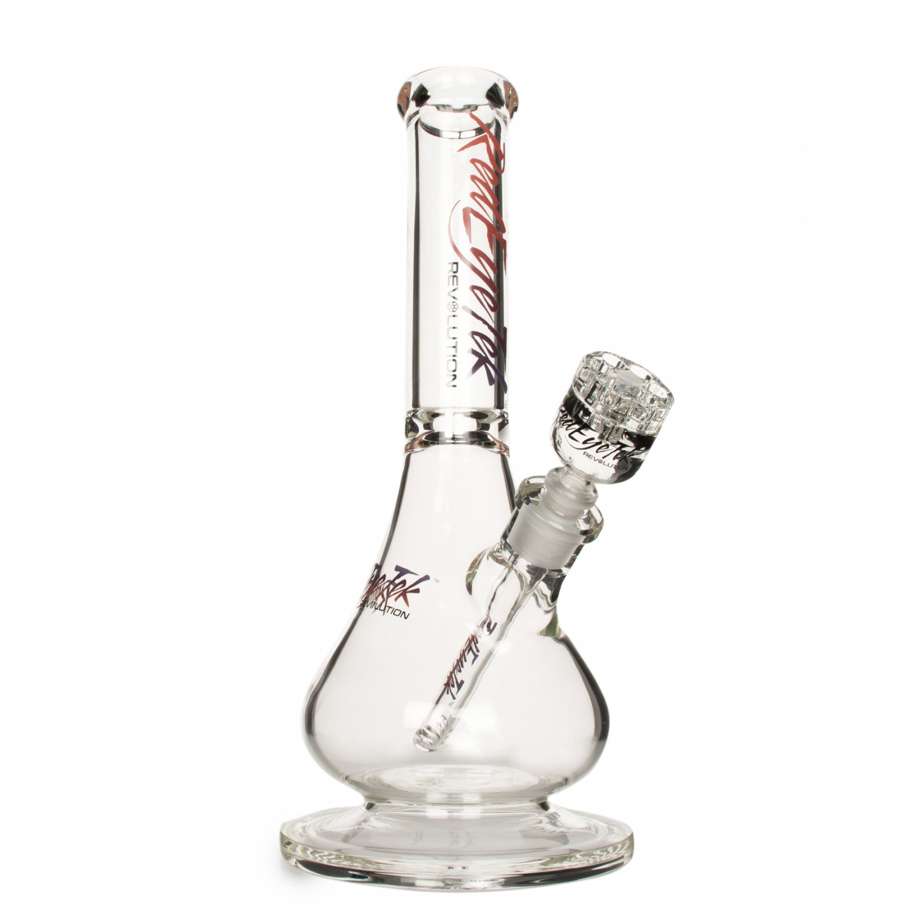 Join the Revolution today with the RED EYE TEK® 15" 7mm Thick Revolution Pedestal Bell Base Water Pipe! This ultra-durable pipe is perfect for your smoke sesh, with a design inspired by synth wave and quirky decals. But the real star of the show is our patent-pending Revolution Pull-Out - never-before-seen technology that lets you preload your bowl or try out a fresh strain every time. Don't miss out on the fun - get your Revolution Pedestal Base Water Pipe now!