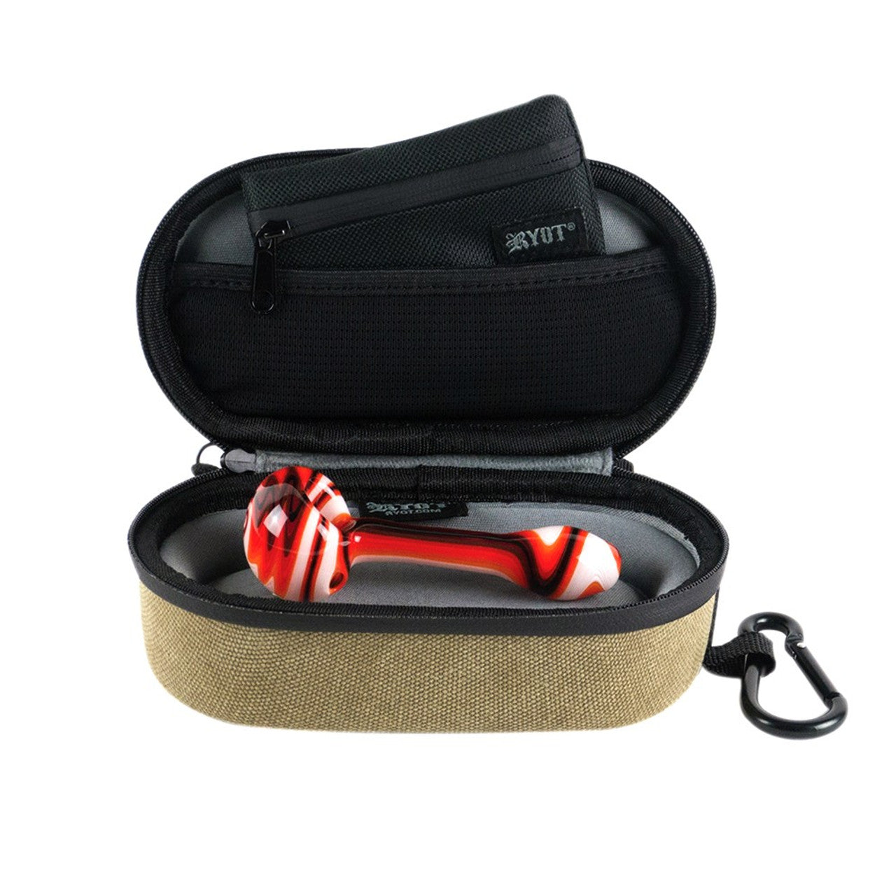 The RYOT HeadCase Hardshell Kit contains a complete smoking system within a scent resistant closure. Its elastic loops and rigid shell make it the perfect option to tote your gear no matter the terrain!