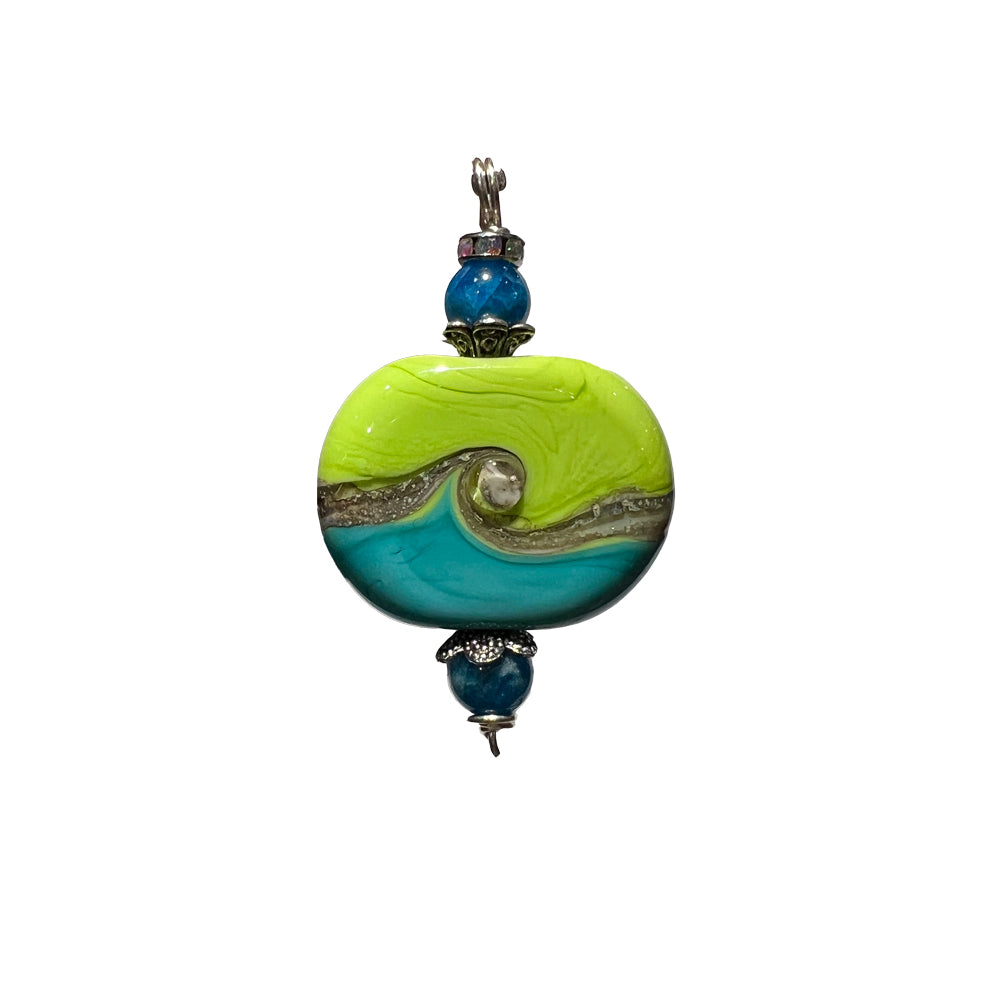 This hand crafted wearable is made locally by Susan Rind. Made from imported Murano glass.